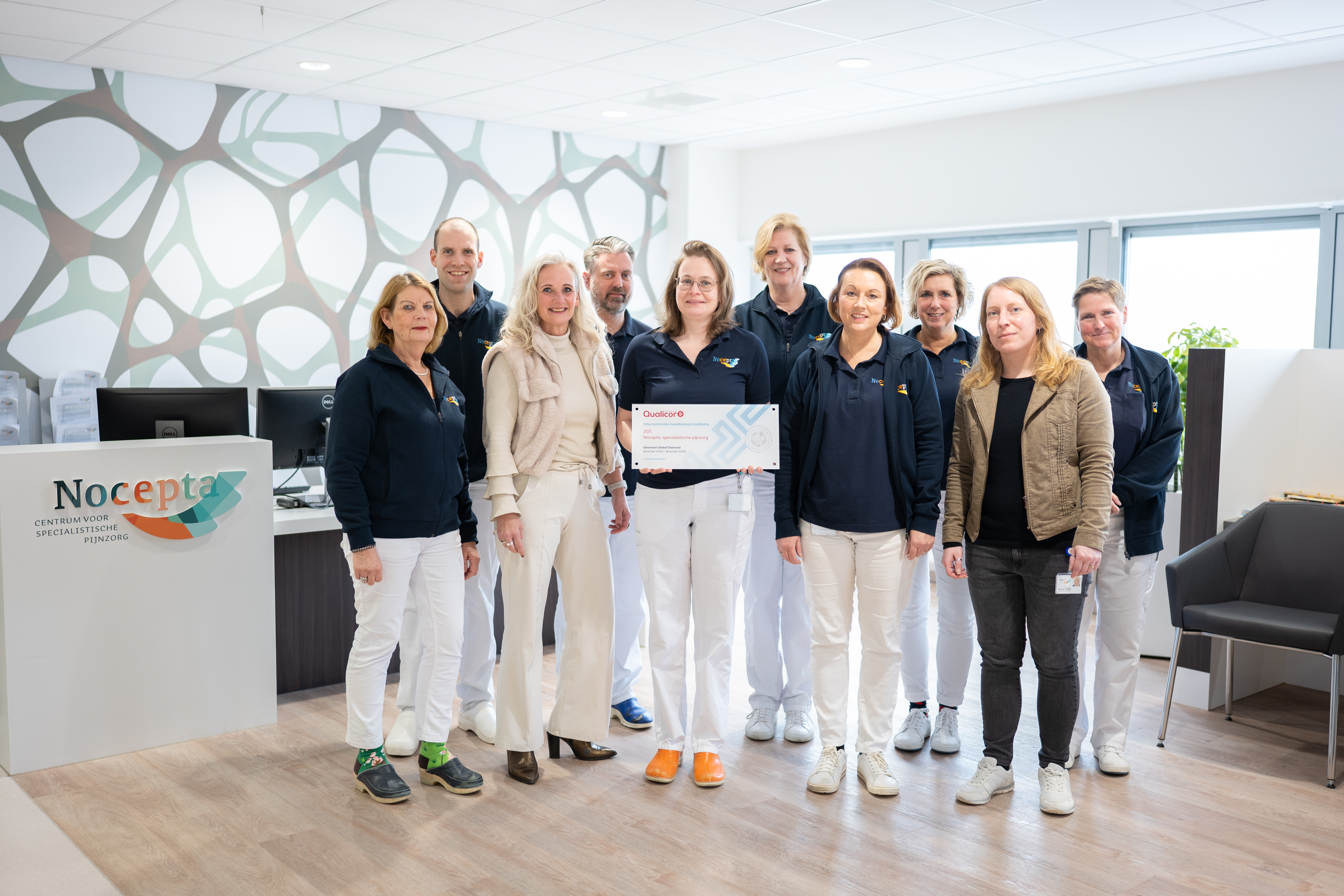 Afbeelding: een aantal medewerkers van Nocepta hebben de Qualicor accreditatie in ontvangst genomen